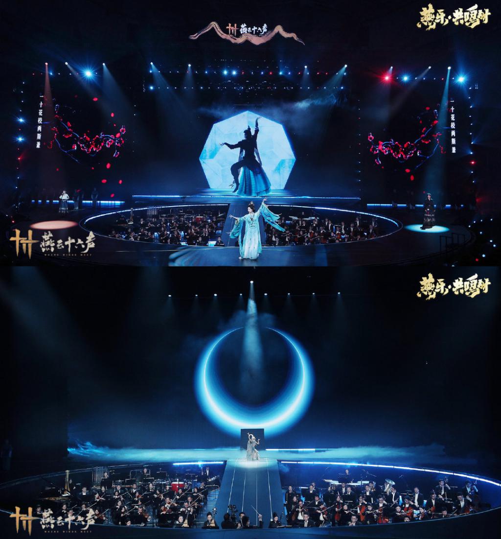 台上既能看到国内顶尖的乐团(中央民族乐团与杭州爱乐乐团),也走着游戏里的角色,有国乐也有蹦迪、有历史也有故事。游戏、侠义和当下现代化的潮流,都被他们煮成了大杂烩。