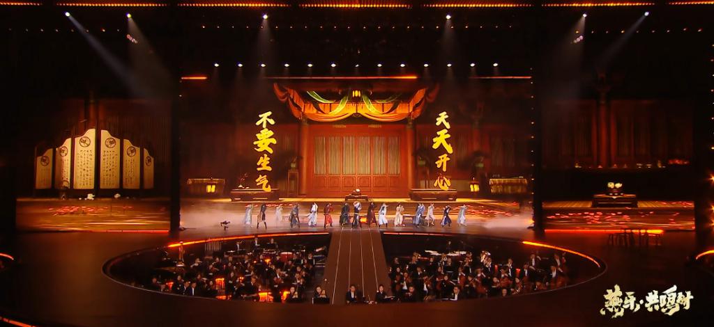 少东家的视角虽小,映照的却是百姓共有的命运。节目《侠为其声》演出时,台上没有英雄,只有许多百姓低着头,用肩膀扛起沉沉压下的“黑财神”。此时音乐从沉闷的低音开始,像压在人心上的重量,随后弦乐一层层扬起,象征着普通人缓缓挺直脊梁的过程。